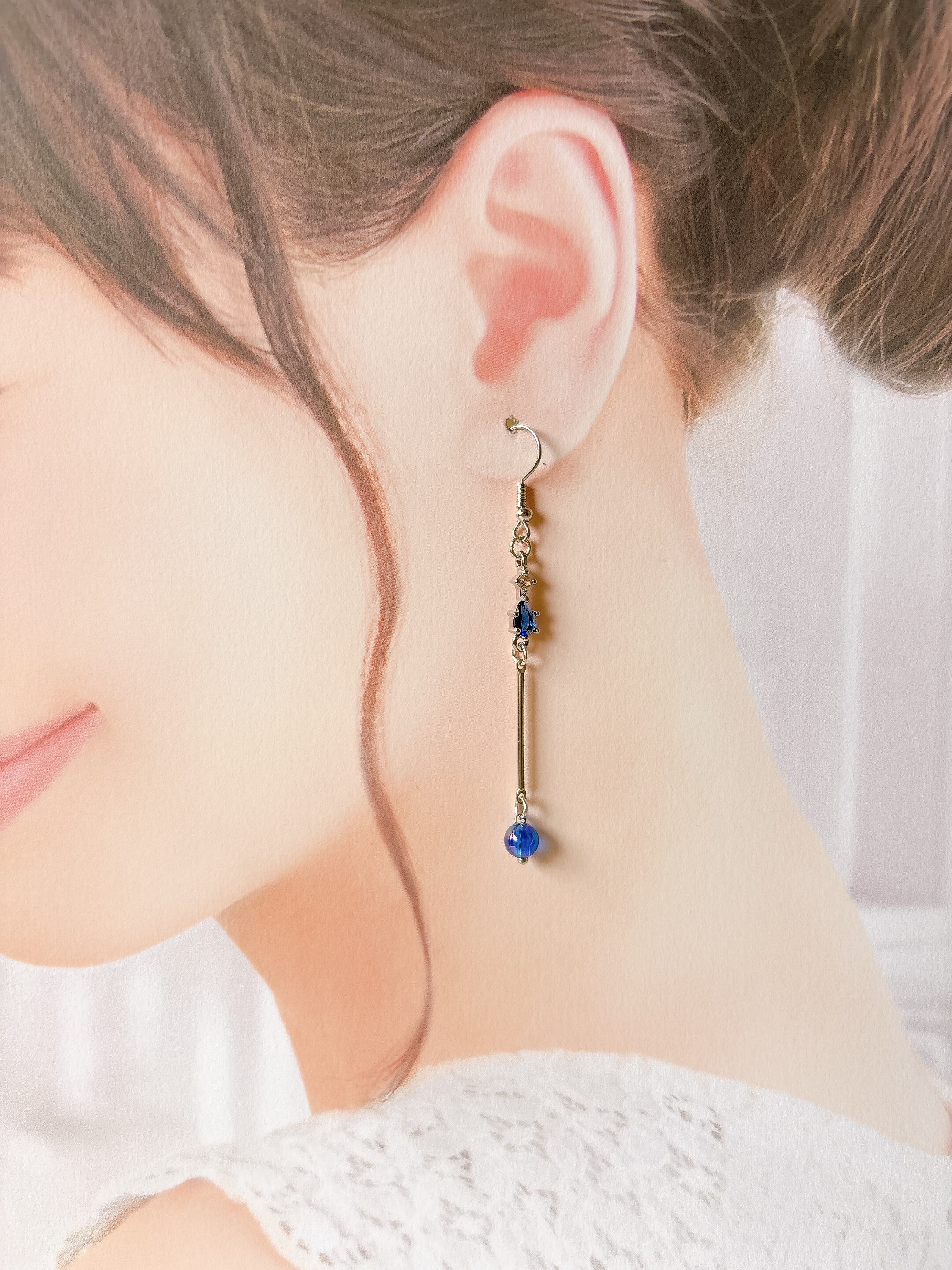シンプルな美しさ ブルー シルバー ピアス イヤリングNo.200