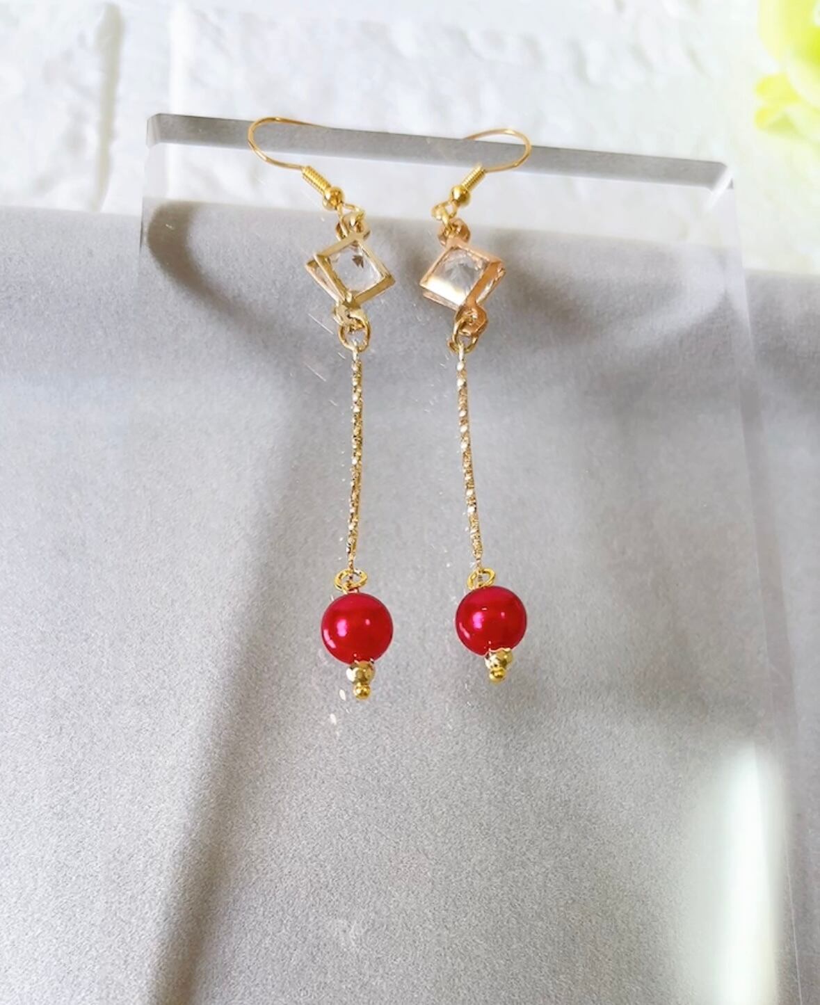 上品 レッド ピアス イヤリング No.205